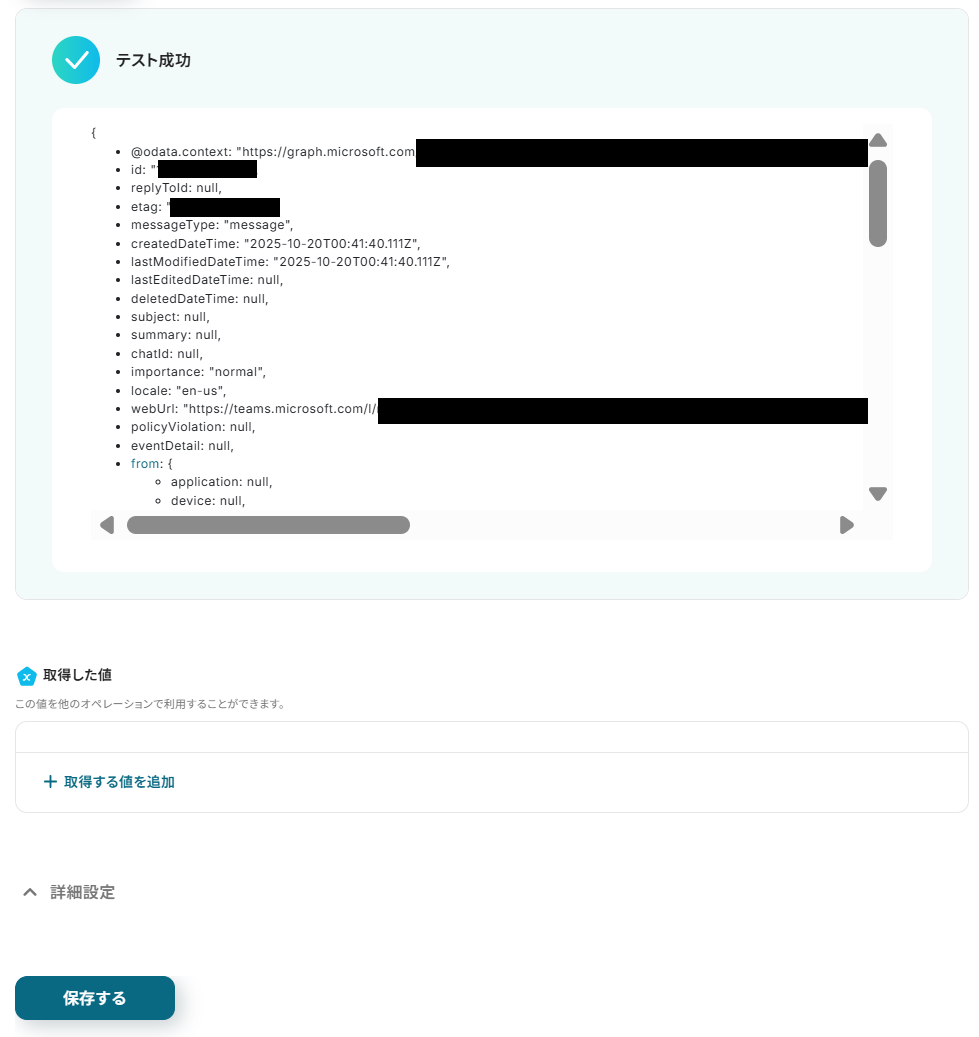 取得した値を使用することで値が固定化されず、フローボットが起動するたびに新しい情報が反映されます。