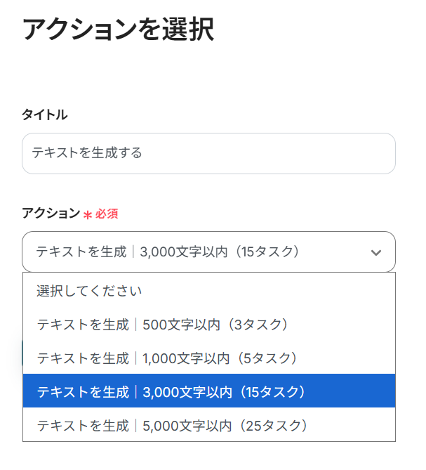 ここでは前項で取得した値からAIでテキストを生成する設定をしていきますよ!