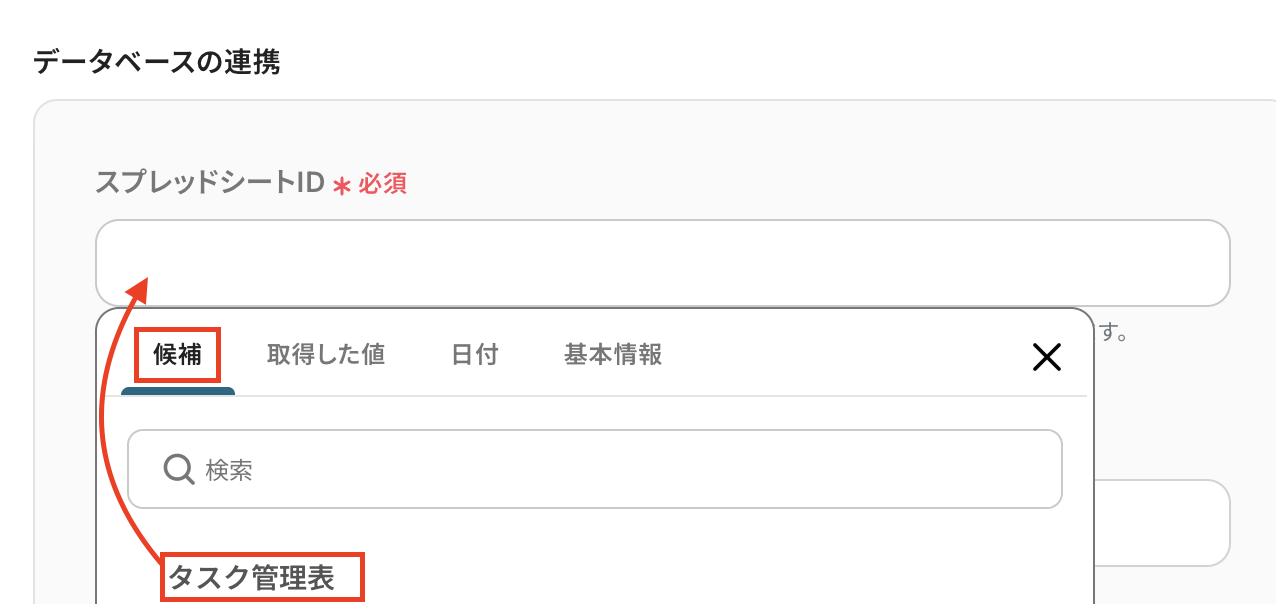 課題の件名はGoogle スプレッドシートのアウトプットから「タスク名」を選択しましょう。
