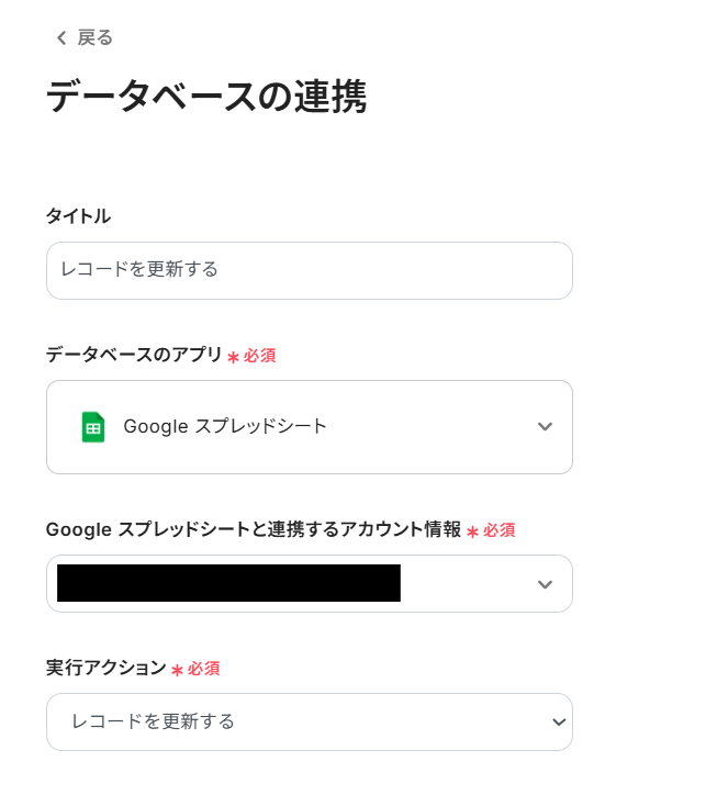 「連携アカウントとアクションを選択」画面では以下を設定します。