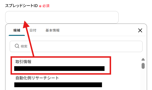 スプレッドシートID:プルダウンより対象のGoogle スプレッドシートを選択してください。