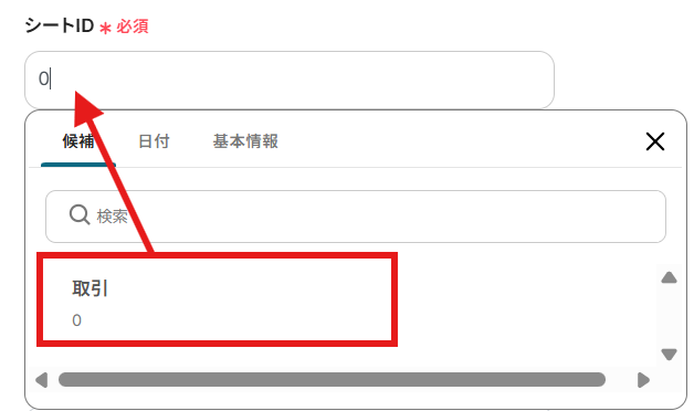 シートID:プルダウンより対象のシートを選択してください。