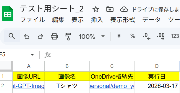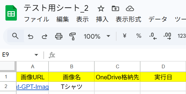 指定したGoogle スプレッドシートを見ると該当の値が追加されています。