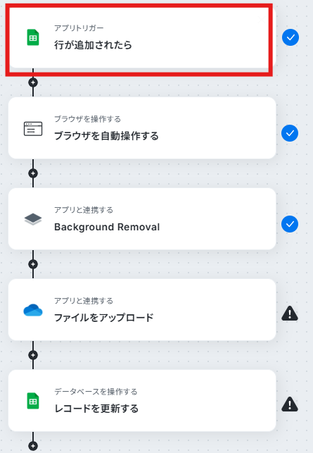 「Google スプレッドシートに画像URLが追加されたら、背景をRemove.bgで削除する」 フローを作成していきます!