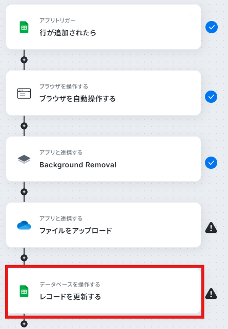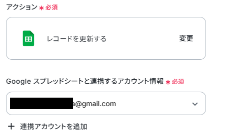 ステップ7:Google スプレッドシートのレコードを更新する 最後にGoogle スプレッドシートのレコードを更新します。「レコードを更新する」をクリックしてください。