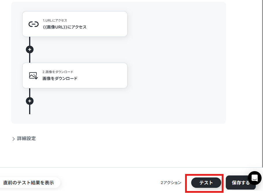 画面右下からテストボタンをクリックします。