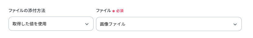 「ファイルの添付方法」、「ファイル」もデフォルト値のまま、以下のように設定しています。