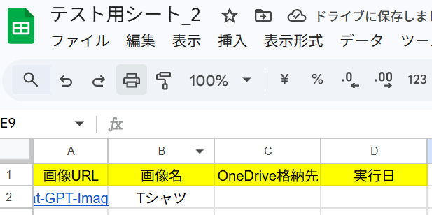 今回は以下のようなGoogle スプレッドシートを用意しました。 画像を直接リンクの形式にして、シートに記載しておきましょう。