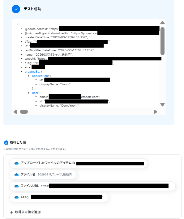 ※取得した値とは? 取得した値とは、トリガーやオペレーション設定時に、「テスト」を実行して取得した値のことを指します。 取得した値は、後続のオペレーション設定時の値として利用でき、フローボットを起動する度に、変動した値となります。詳しくは以下をご覧ください。
