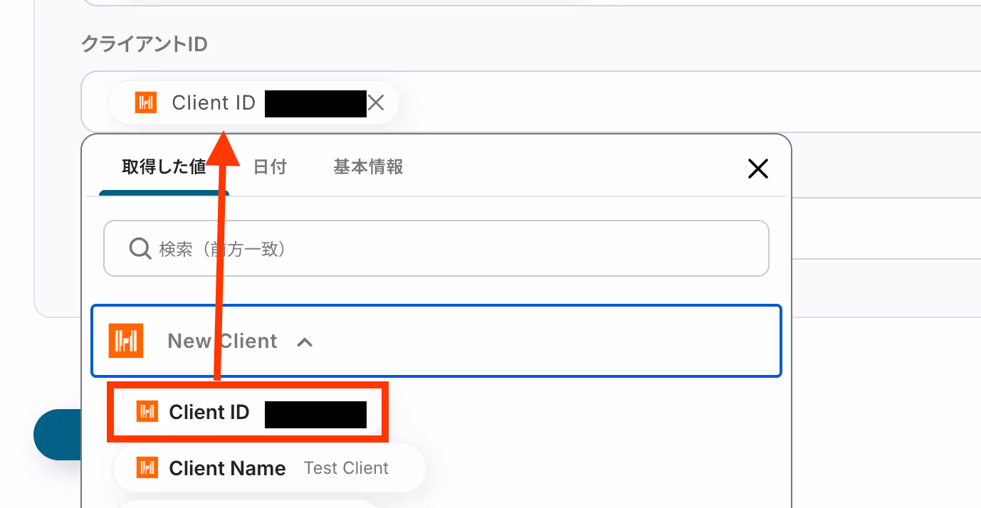 クライアント情報を追加したいスプレッドシートのIDを候補の中から選択します。