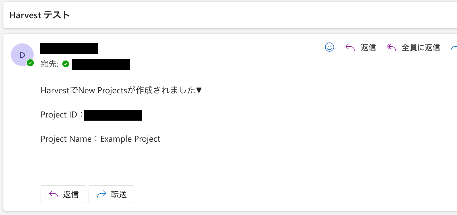 Harvestで新しいプロジェクトが作成されると、関係者へ自動的にOutlookで通知メールを送信できます。