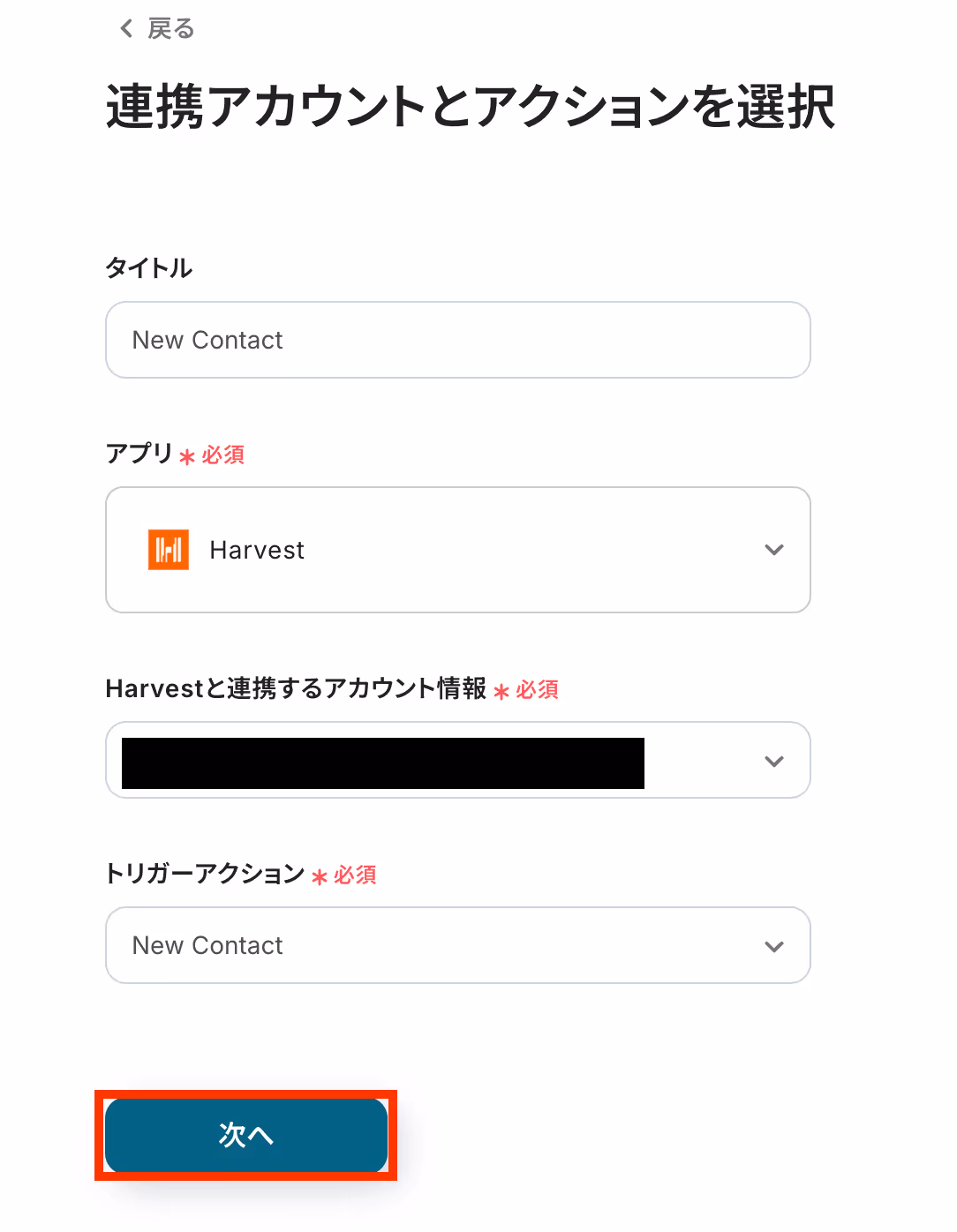トリガーアクションは、「New Contact」のままで問題ありません。