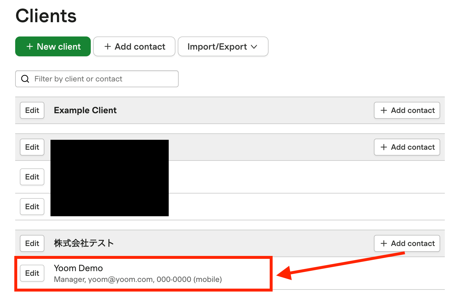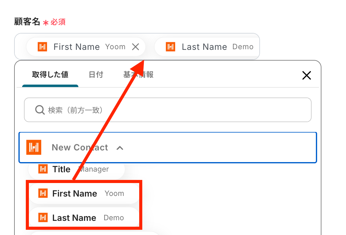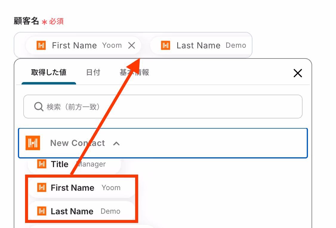 ※今回は以下の「Yoom Demo」の顧客情報をテストとして作成しました。