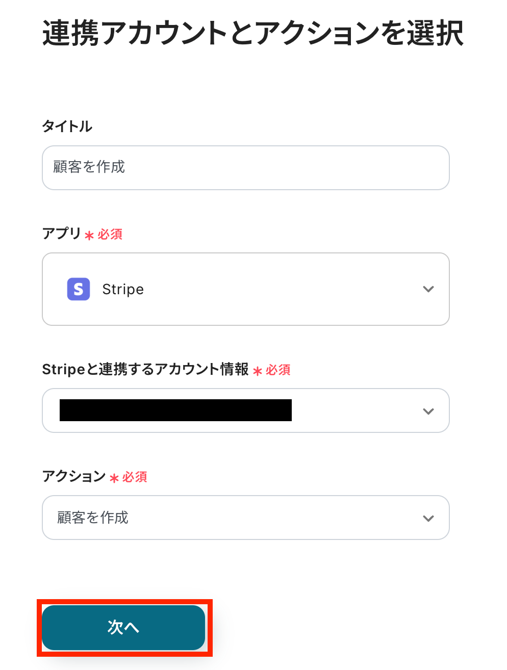 ステップ4:Stripeのアクション設定