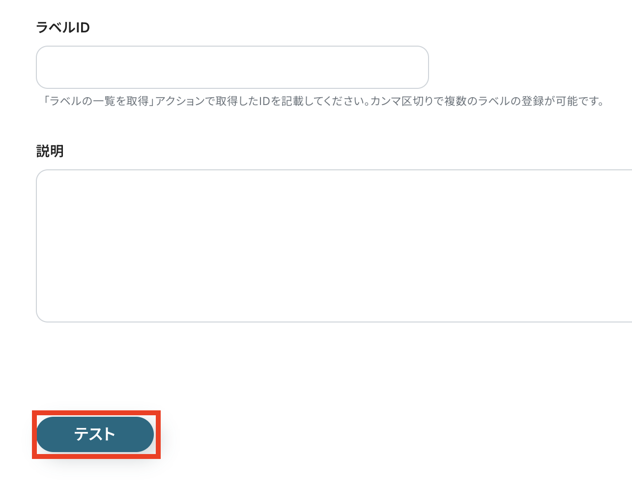 タスクの作成が終わったら、「テスト」ボタンをクリックします。