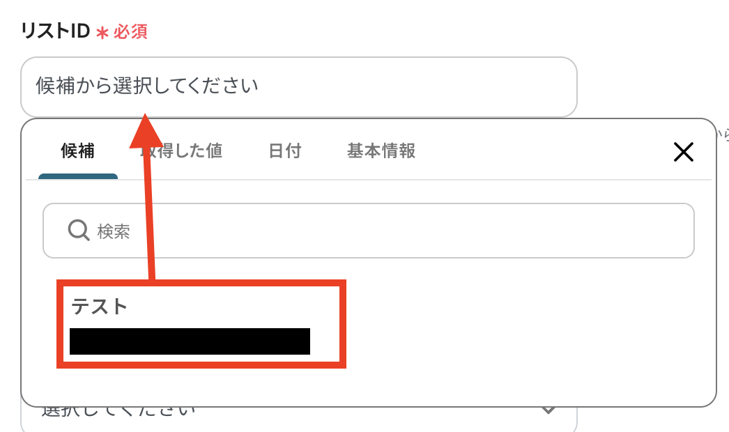 リストIDを表示された候補の中から選択して設定します。
