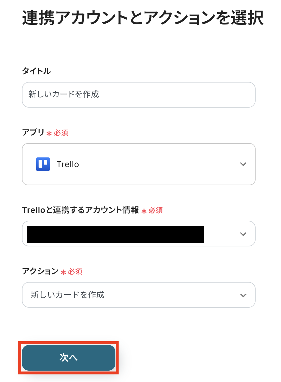 ステップ4:Trelloにカードを作成する設定