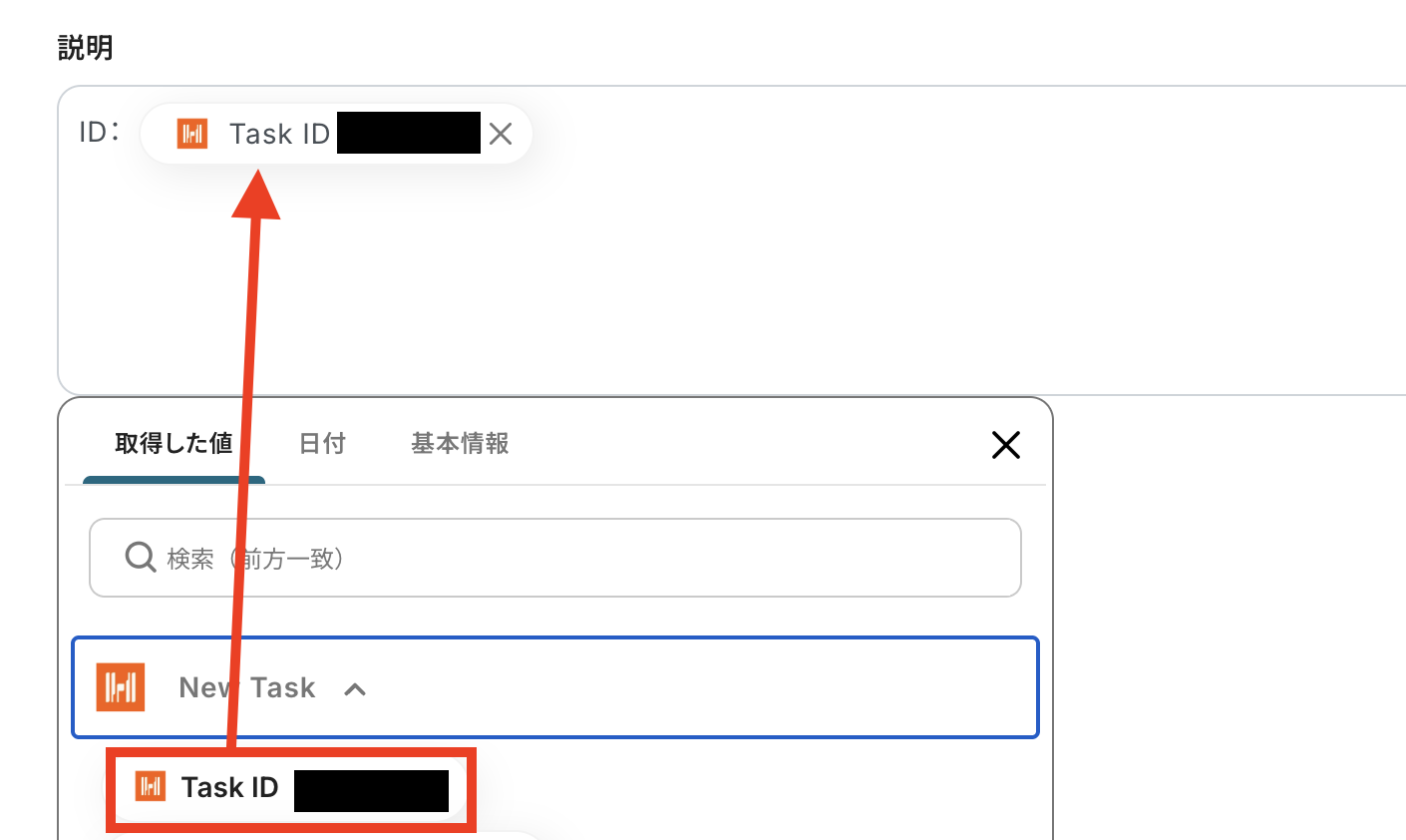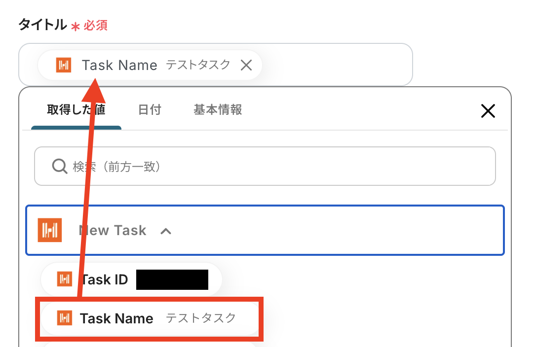 Harvestから取得した値を利用して、Wrikeにタスクを作成する設定を行います。