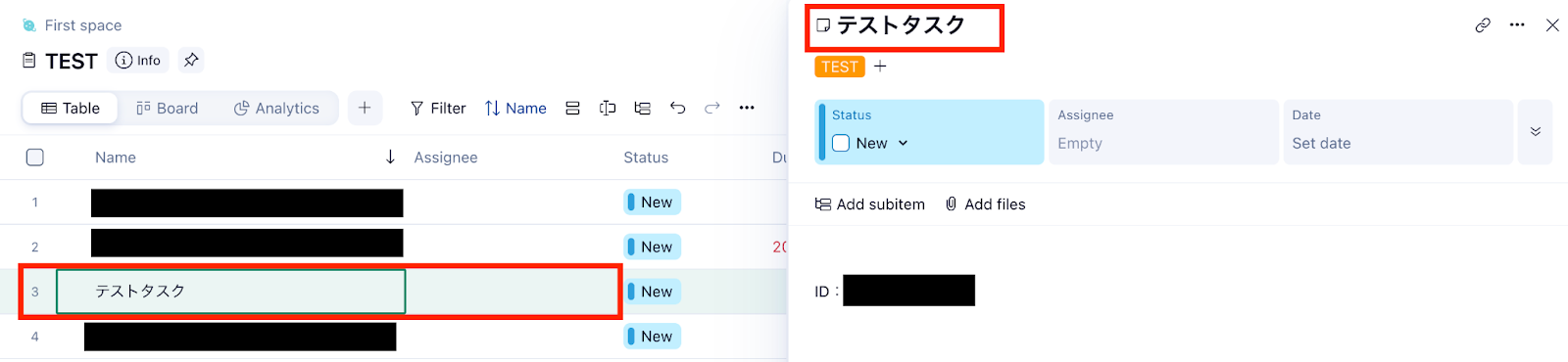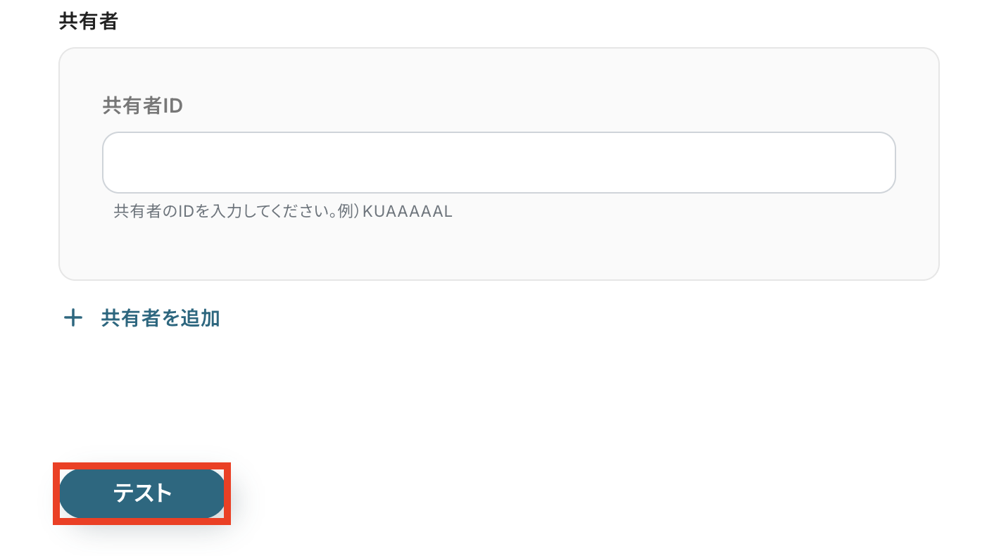タスクの作成が終わったら、「テスト」ボタンをクリックします。