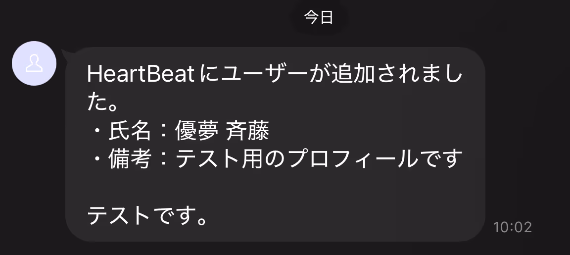 以上が、HeartBeatでUserが新しく作成されたら、LINE公式アカウントにメッセージを送信する方法でした!