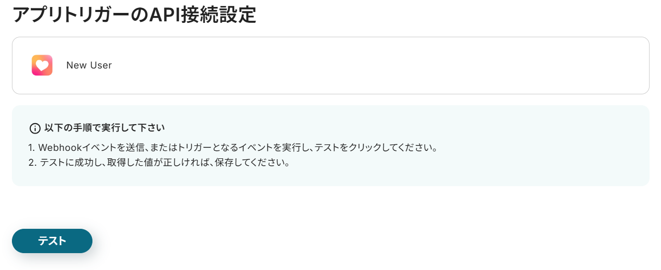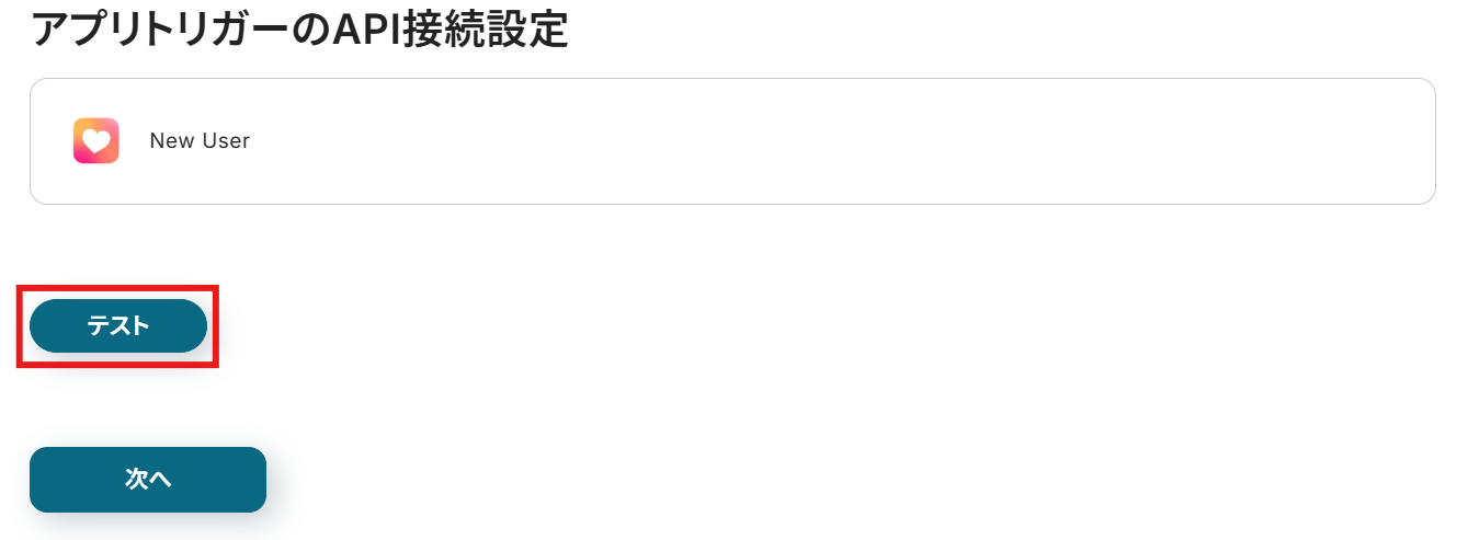 設定が終わったらYoomに戻り、テストをクリックしましょう。