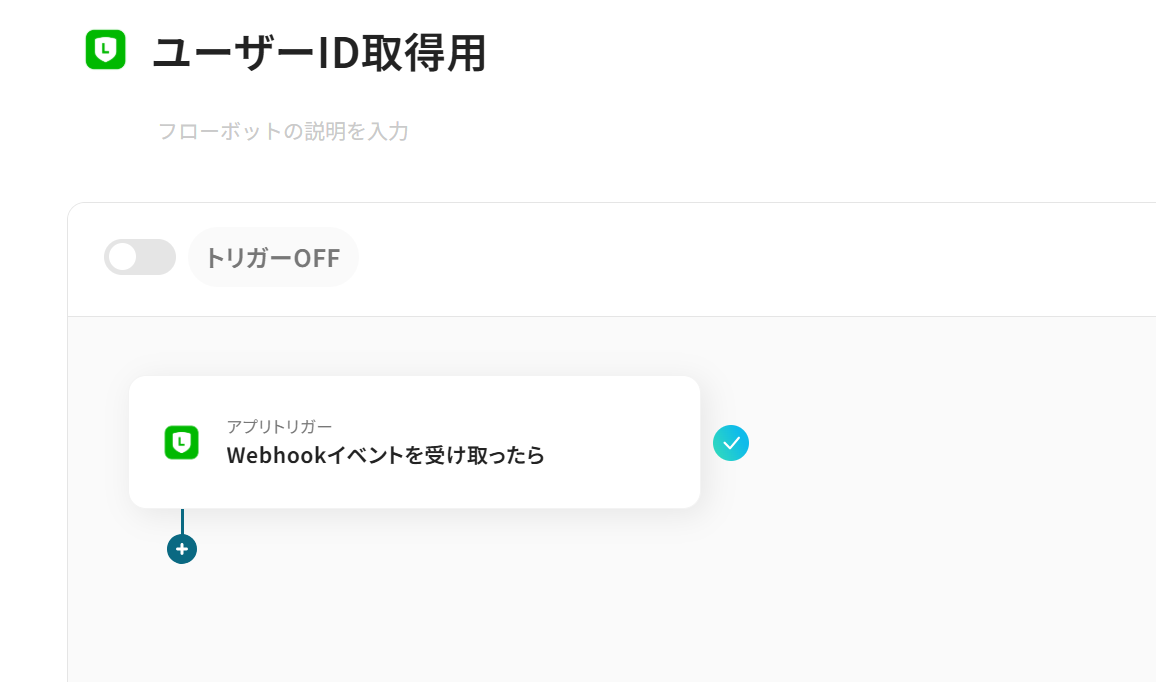 ユーザーIDを取得するには、以下のように新規フローボットを作成し、Webhookのトリガーを設定することで取得できます。