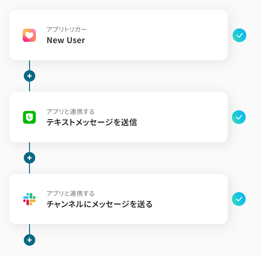 例えば、HeartBeatに新しいユーザーが登録された際に、その情報をトリガーとしてLINE公式アカウントに自動でメッセージを送信するといったことが実現できます。
