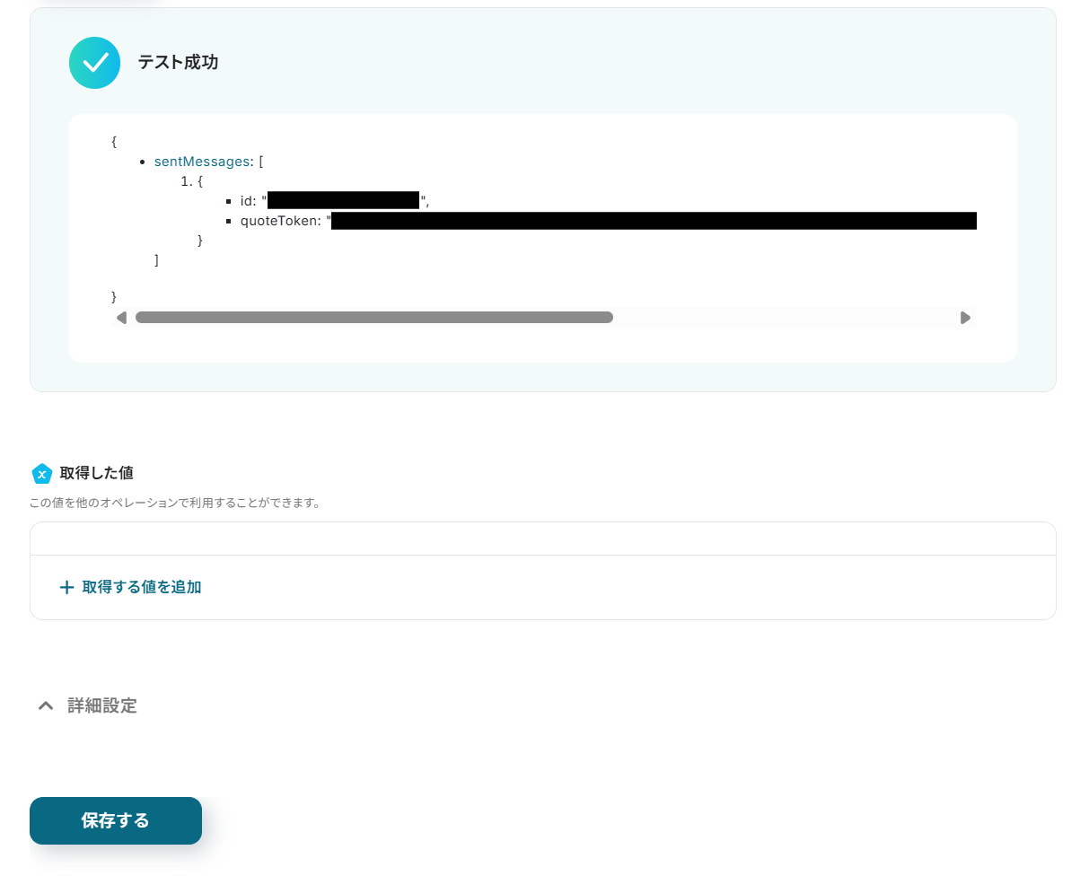 画面に「テスト成功」と表示されたら、最後に「保存する」をクリックして設定完了です!