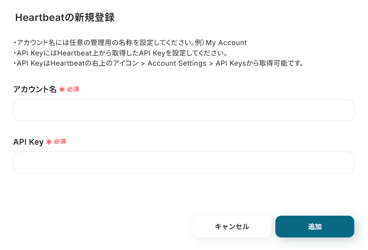 HeartBeatと連携するアカウント情報はプルダウンから選択します。
