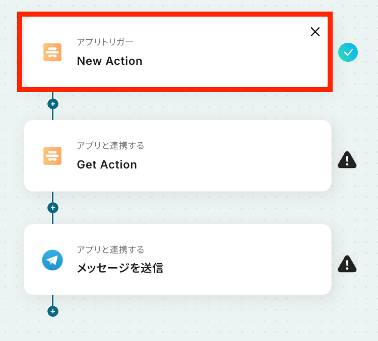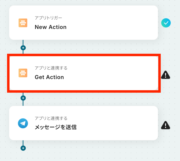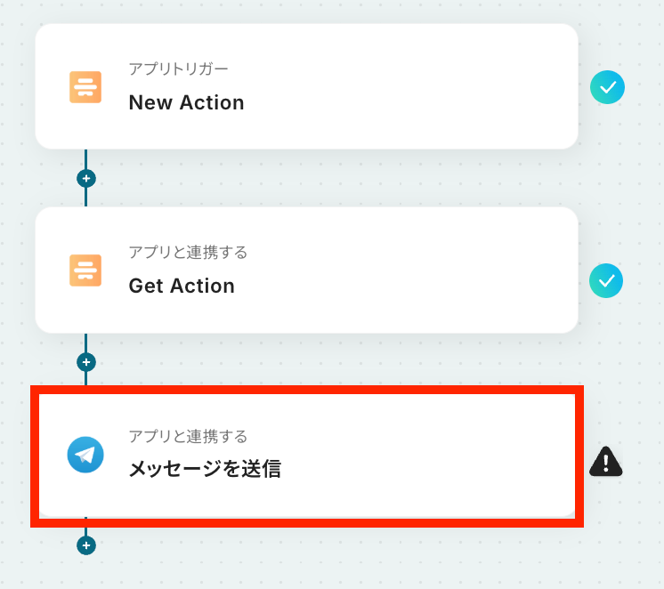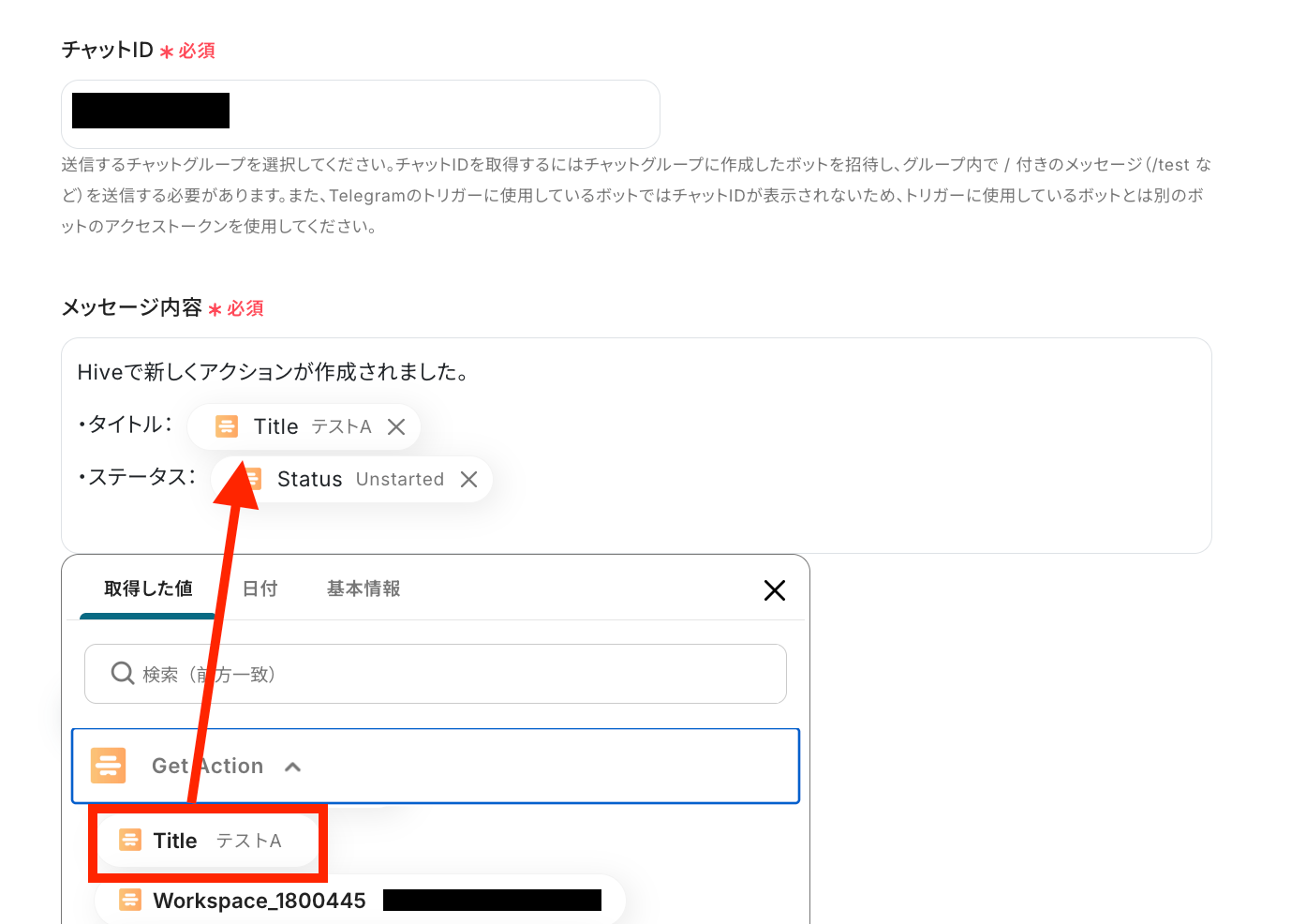 ステップ5:Telegramのアクション設定 最後に、取得した値を利用して、Telegramでメッセージを送信する設定を行います。