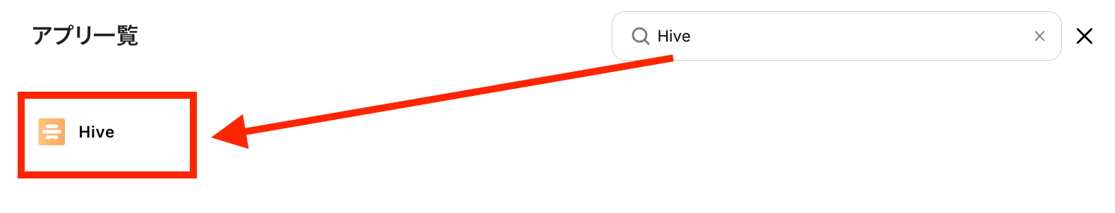 Hiveの連携 検索欄にHiveと記入して、表示されたアイコンをクリックします。