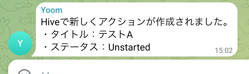 Hiveで新しいActionが作成されたら、Telegramで通知する