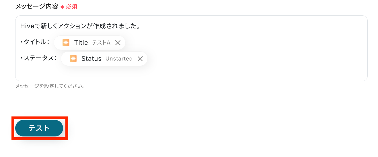 メッセージ内容の設定が終了したら、テストを実行して下さい。