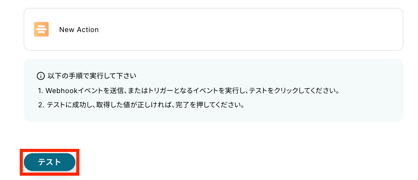 続いて、Webhookイベントを正しく受け取れるかの確認を行います。 Hiveを開き、新しいアクションを作成しましょう!