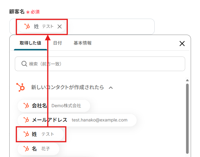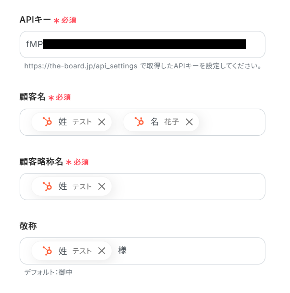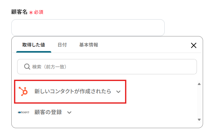 boardで顧客情報が登録されたら、その情報から必要なデータを抽出し、HubSpotに自動で新しいコンタクトを作成します。