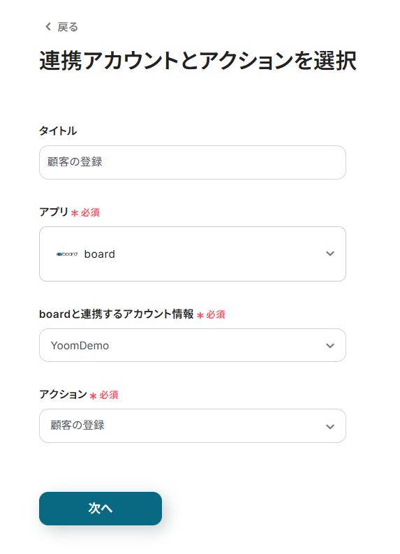 それでは、取得したコンタクトの情報を用いてboardに顧客を登録しましょう。