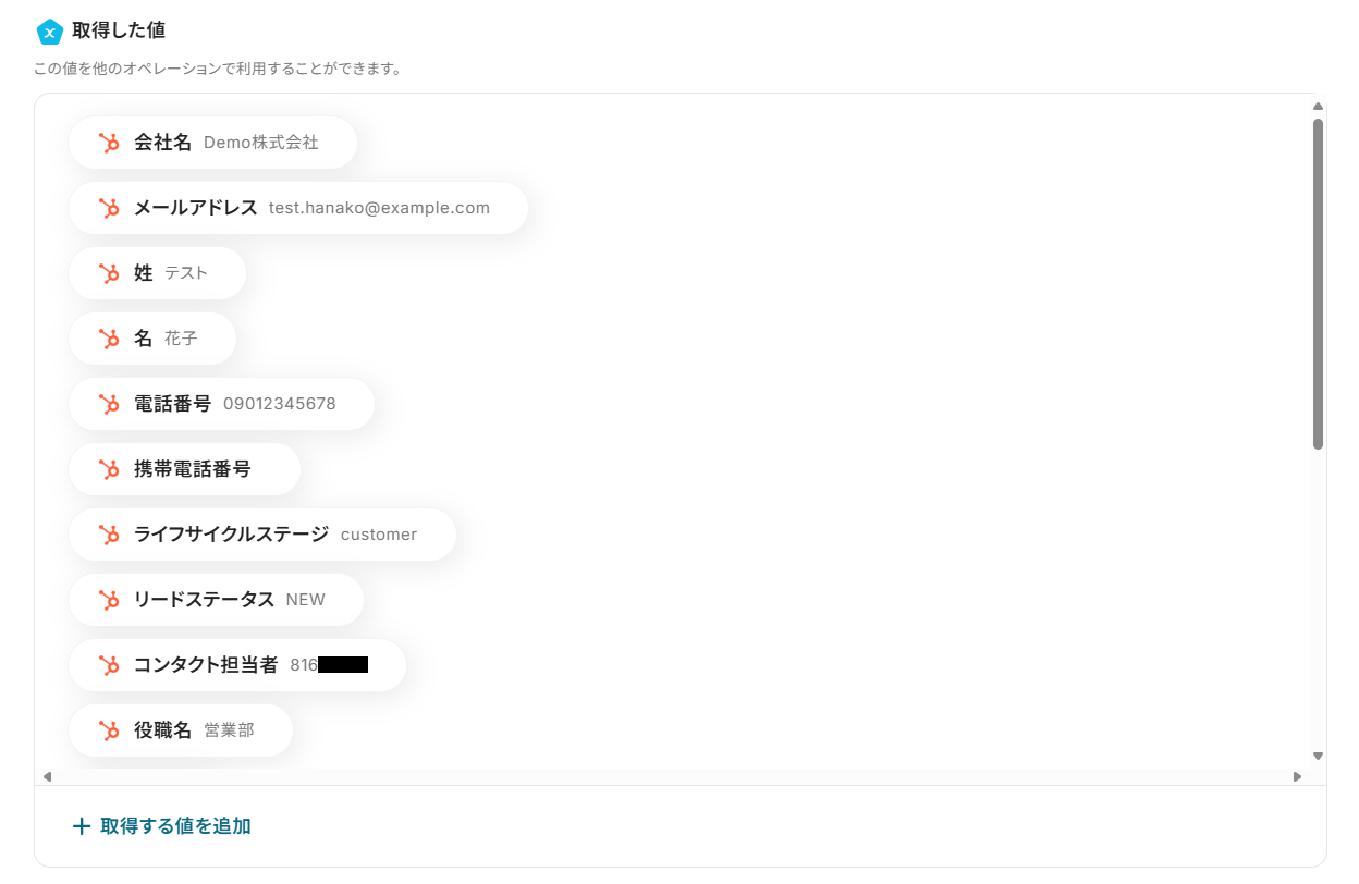 HubSpotから取得したコンタクト情報をメッセージに含めることができます。