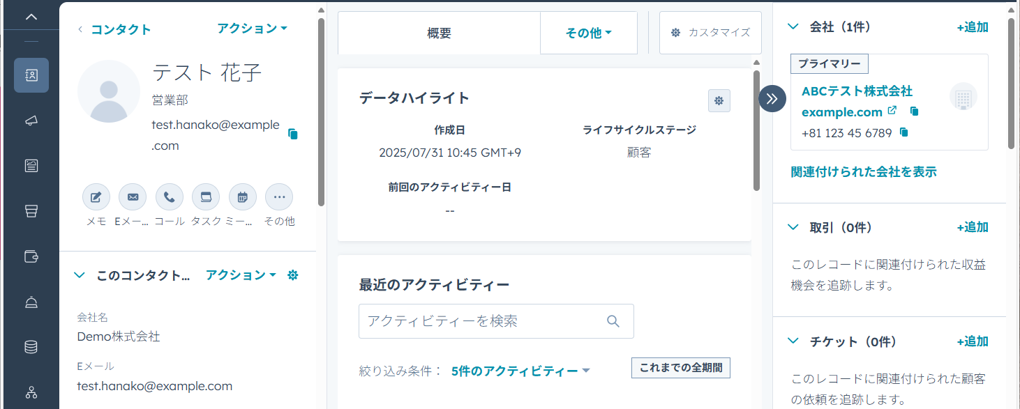 HubSpotでコンタクトを作成し、その情報をもとにした顧客がboardに登録されていれば成功です。