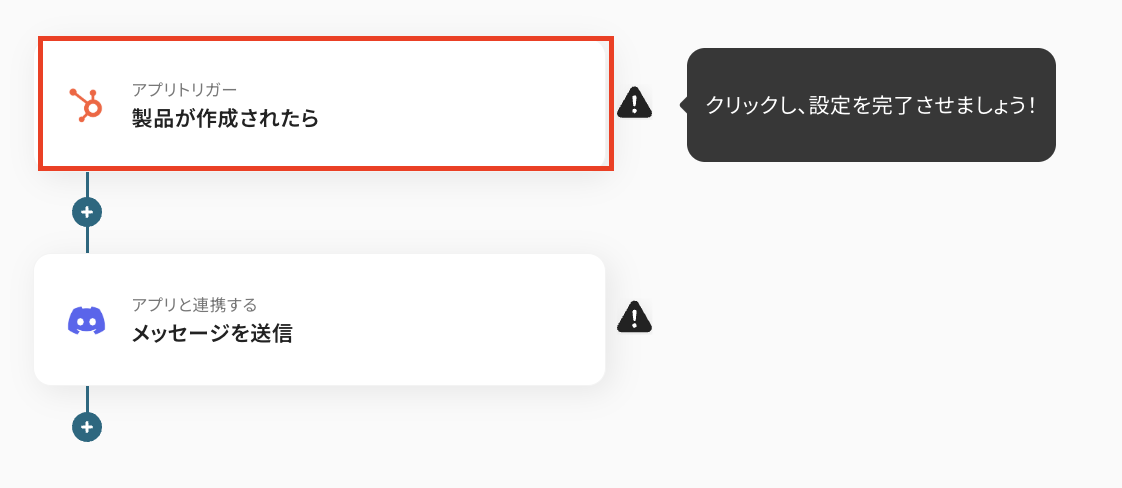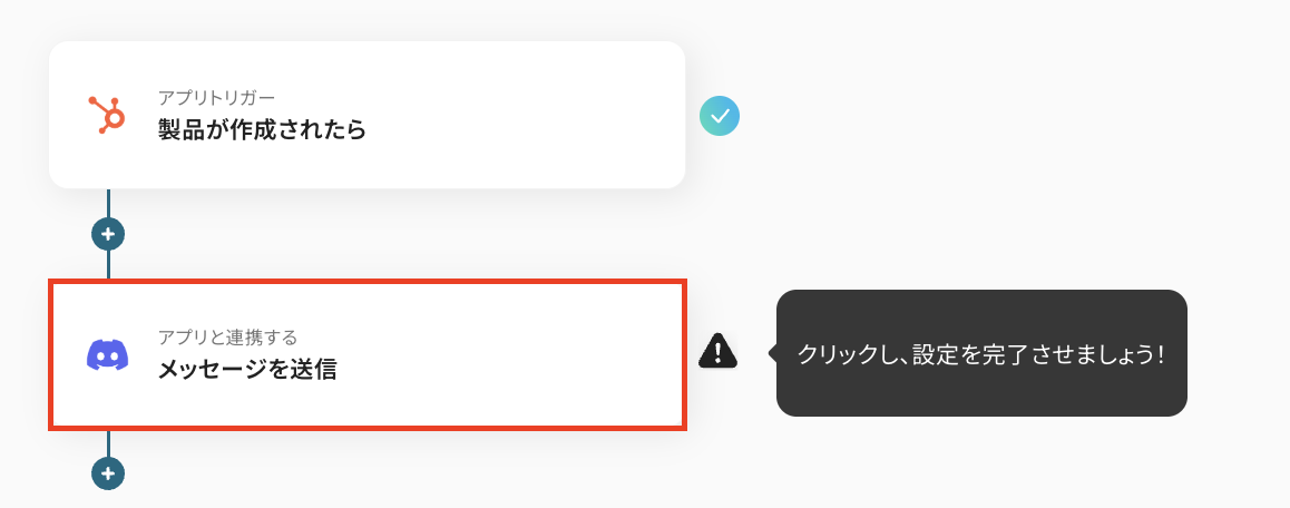 続いて、HubSpotに新しく製品が作成された旨をDiscordに通知する設定を行います。