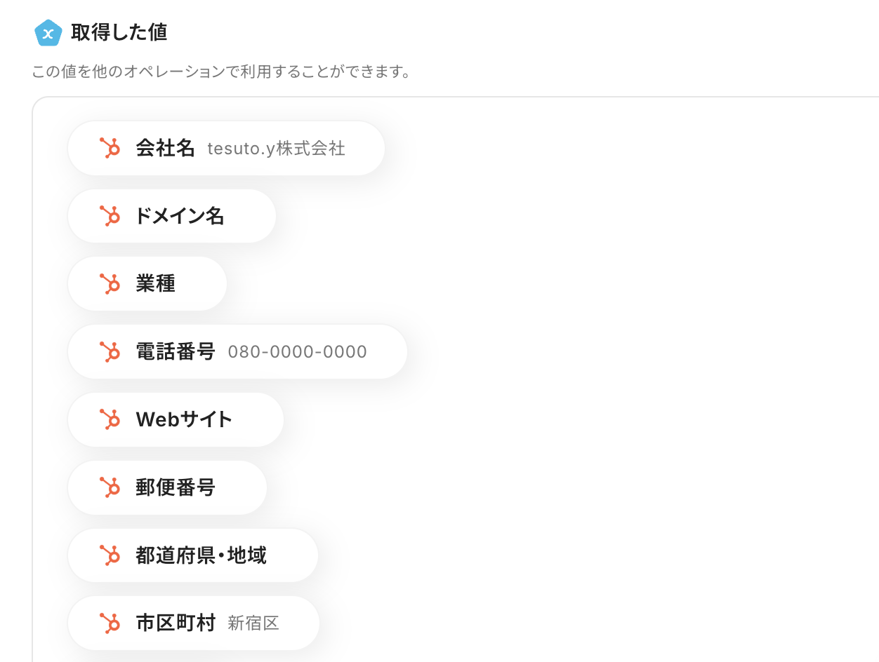 テストが成功し、HubSpotの情報が取得した値に追加されたら保存しましょう。