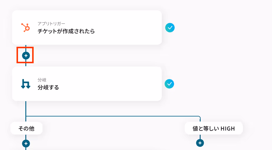 トリガー直下の「+」ボタンを押して「分岐する」オペレーションを追加することで、指定する条件に一致するデータのみを連携できるようになります。