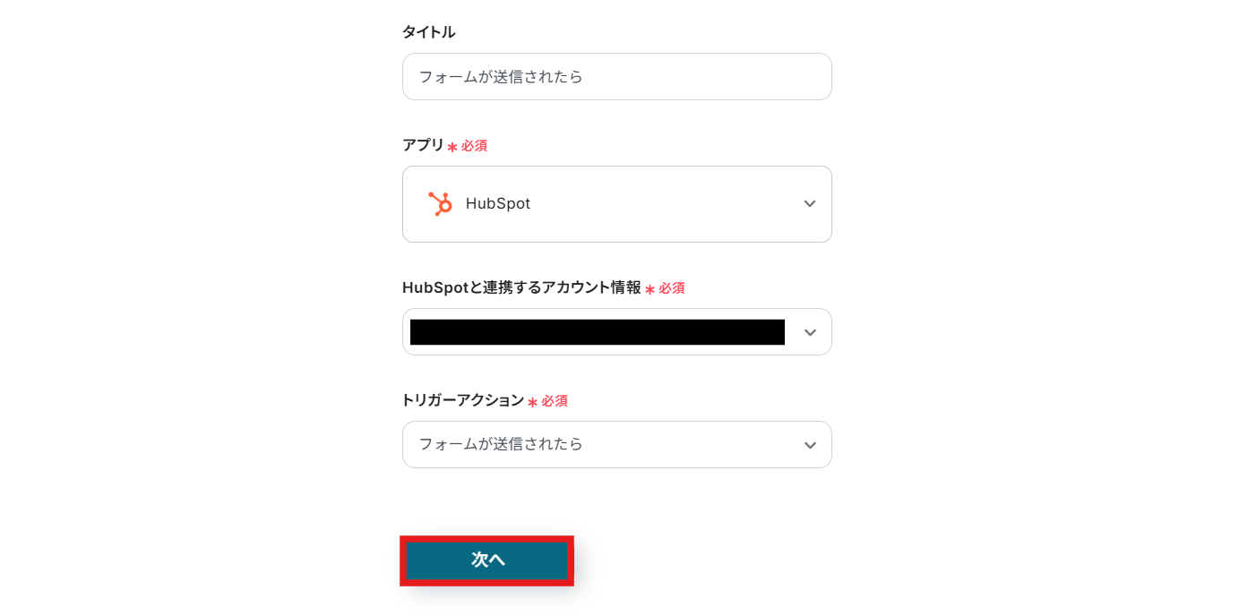 HubSpotと連携するアカウント情報にはマイアプリ登録したアカウントが設定されています。
