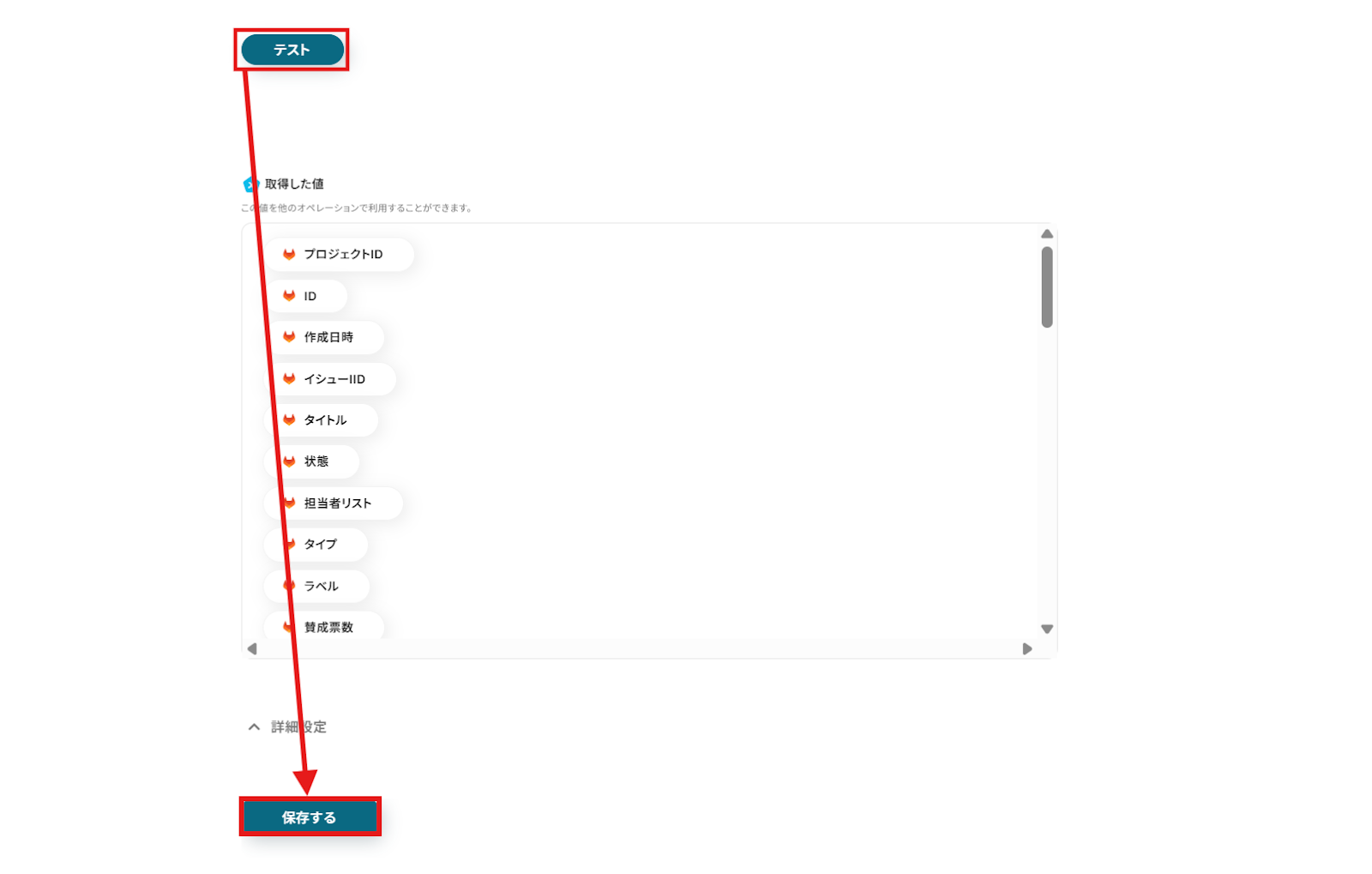 テスト後、「保存する」をクリックするのを忘れないようにしましょう。