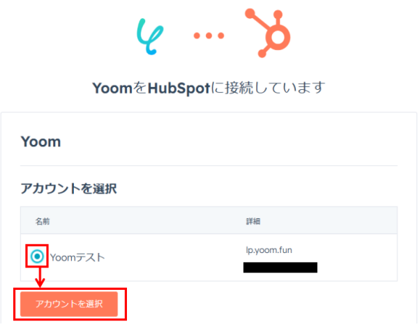 Yoomと連携したいアカウントを選び「アカウントを選択」をクリックしてください。