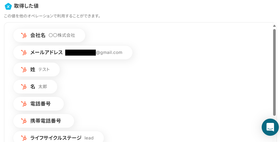 HubSpotのコンタクトを作成したら、Yoom画面に戻り「テスト」を実行してみましょう。