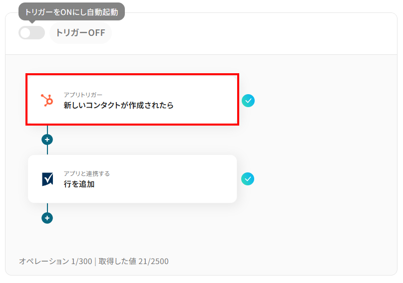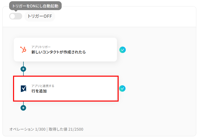 HubSpotでコンタクトが作成されたら、Smartsheetで行を追加する