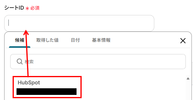 - シートID:入力欄をクリックし、作成したシートを候補から選択しましょう。