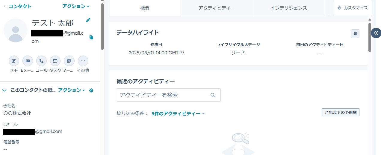 今回はテストなので、架空の情報(「テスト株式会社」や「テスト太郎」など)のコンタクトを作成してください。