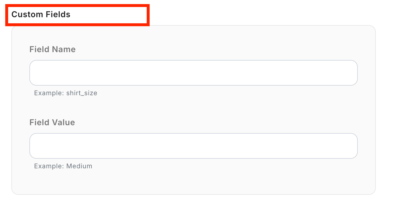 該当項目がない場合、DripのAPI設定にて「Custom Fields」の項目を活用ください。