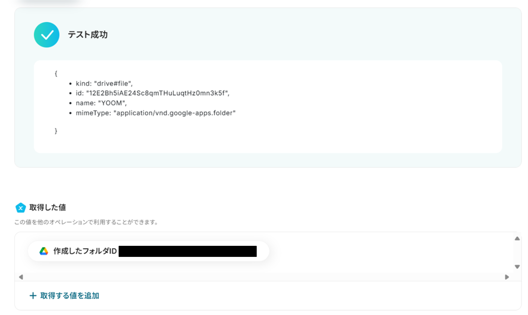 テストに成功するとGoogle Driveにフォルダが作成されていました!